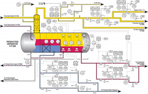 Training Manuals developed by TechTrain are usually client system specific. They describe in easy to read text how a system functions and include high quality graphics/illustrations. Systems are illustrated using colour drawings based on the client's project Piping and Instrumentation Diagrams (P&ID's) – see example below. These illustrations/drawings utilise a degree of scaling so that the trainee can easily differentiate between piping sizes. The use of colour permits the trainee to understand the routing of particular fluids.